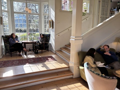 Der er også uendelig mange hjørner rundt på stedet, hvor man kan sidde og reflektere i fred og ro. Der er en smuk natur at lade sig inspirere af og højt til himlen så tankerne kan flyve. Og så kender Hornbækhus' medarbejdere os så godt, og ved lige hvad vi har brug for de forskellige dage, for at få det perfekte ophold ifht vores behov.